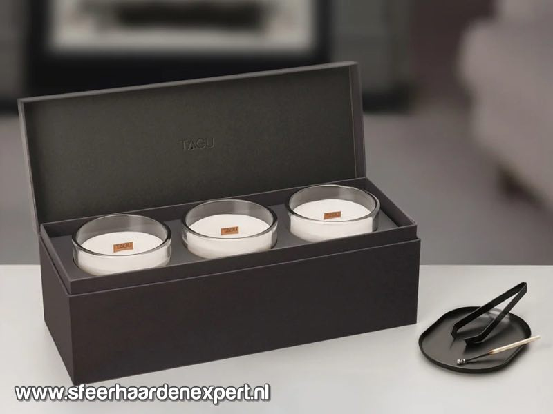 De drie kaarsen staan centraal in de Zenflame en vormen een veilige, onderhoudsarme oplossing. De gemiddelde brandduur van een Tagu kaars is ongeveer 50 tot 60 uur. Als de kaarsen opgebrand zijn dan kunt u deze nabestellen via onze website. Dankzij de goede verpakking wordt deze haard veilig bij u thuis geleverd door PostNL of onze eigen bezorgdienst.