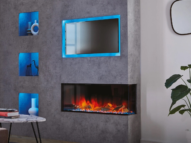 De nieuwe i1000e Deep is een veelzijdige tweezijdige hoekhaard die in elke binnenruimte past. De look en feel van uw haard is aanpasbaar, waarbij installatie mogelijk is met het glas open aan de linkerzijde of glas zichtbaar aan de rechterzijde. Bovendien kunt u met de nieuwe Charlton & Jenrick i-1000e Deep Smart App alle aspecten van het vuur vanaf uw mobiele apparaat bedienen, inclusief de twee nieuwe optionele knettergeluidseffecten.